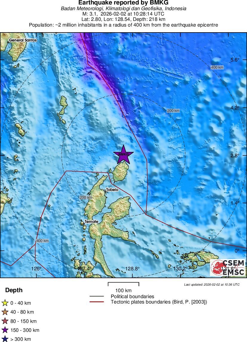 | 3.1 | 218 | 12039 | 11:28 | Link | Kleine beving - HALMAHERA, INDONESIA - Vandaag |