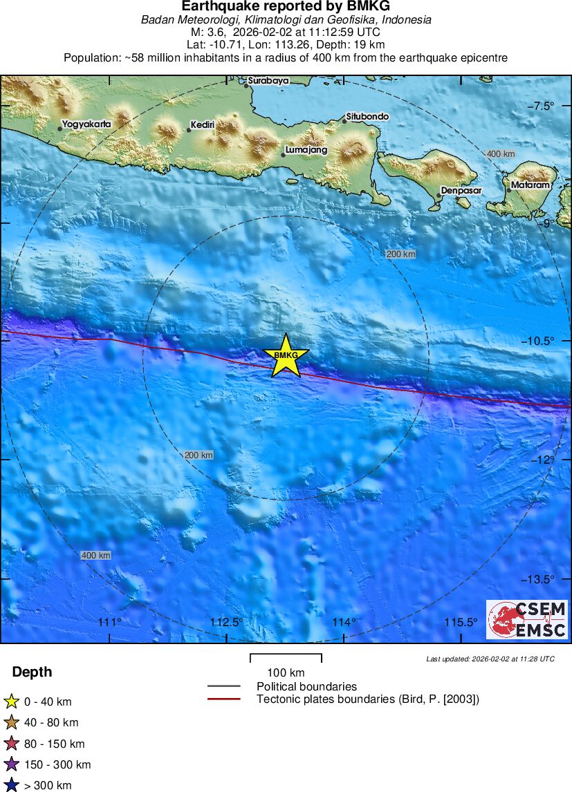 | 3.6 | 19 | 12239 | 12:12 | Link | Kleine beving - SOUTH OF JAVA, INDONESIA - Vandaag |