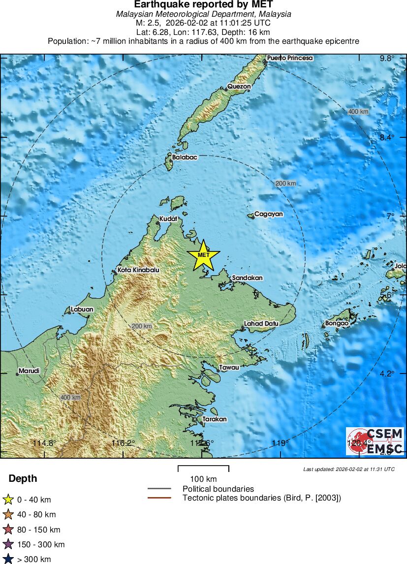 | 2.5 | 15.6 | 11034 | 12:01 | Link | Kleine beving - SABAH, MALAYSIA - Vandaag |