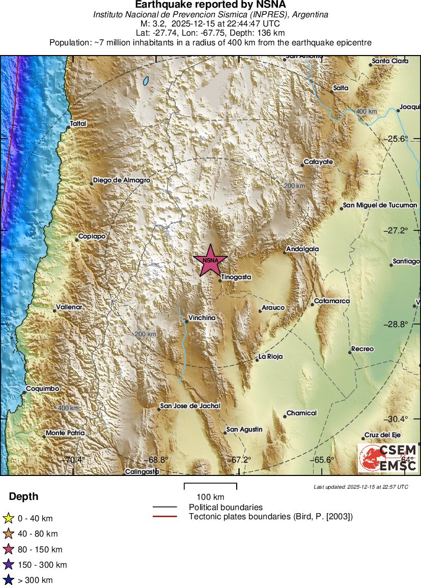 | 3.2 | 136 | 11241 | 23:44 | Link | Kleine beving - CATAMARCA, ARGENTINA - Gisteren |
