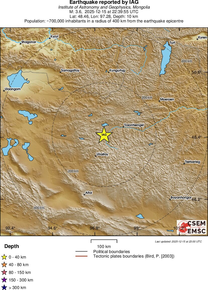 | 3.6 | 10 | 6206 | 23:39 | Link | Kleine beving - WESTERN MONGOLIA - Gisteren |