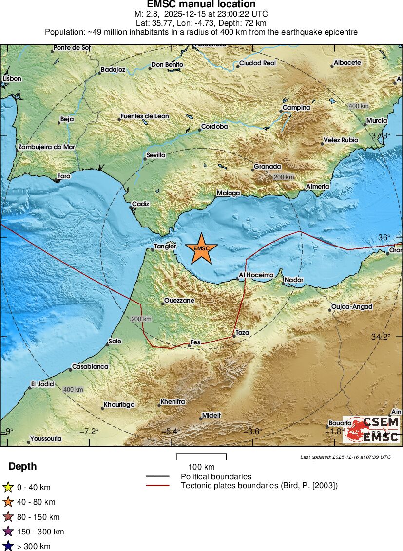 | 2.8 | 71.5 | 1851 | 00:00 | Link | Kleine beving - STRAIT OF GIBRALTAR - Vandaag |