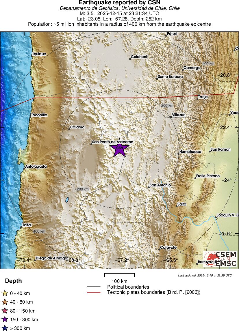 | 3.5 | 252.3 | 10797 | 00:21 | Link | Kleine beving - ANTOFAGASTA, CHILE - Vandaag |