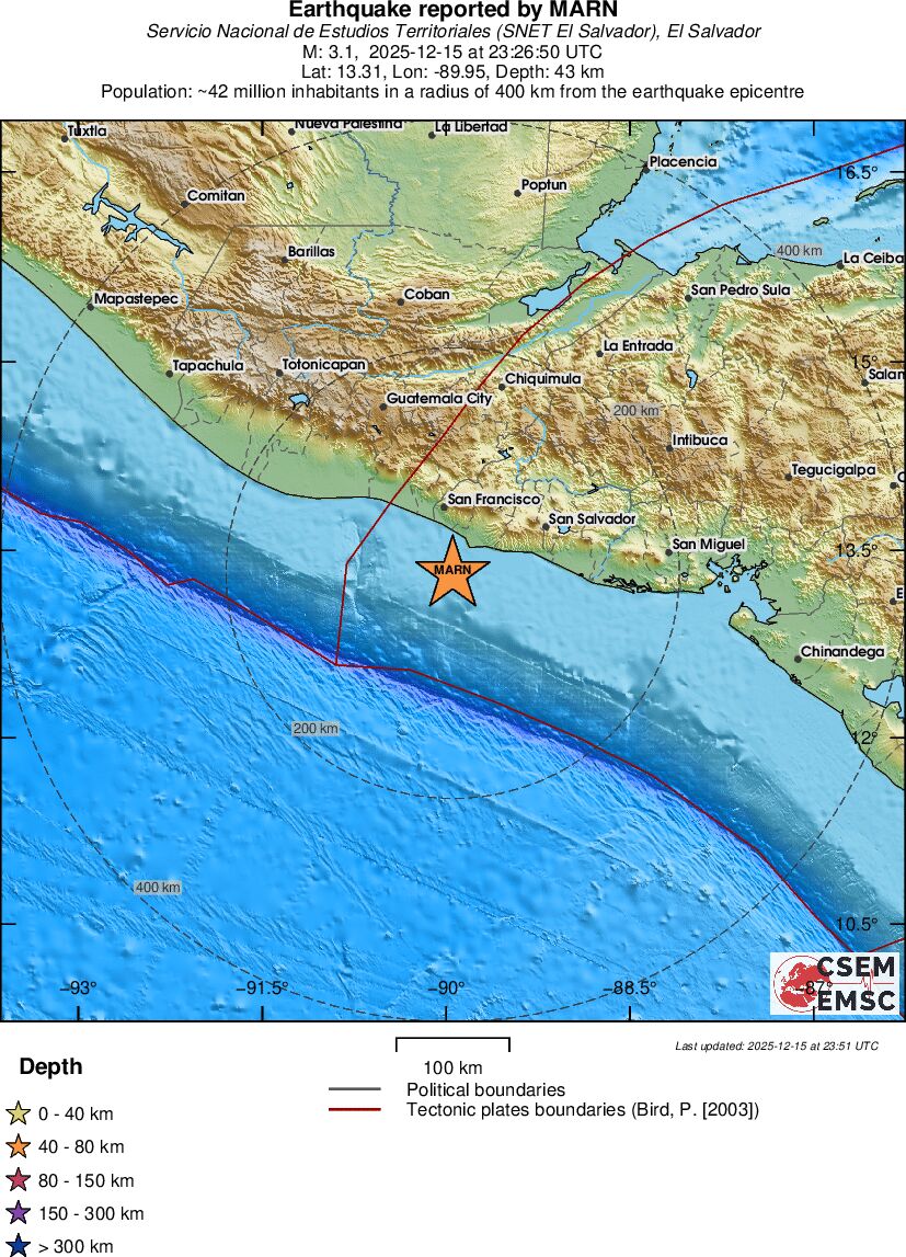 | 3.1 | 42.6 | 9168 | 00:26 | Link | Kleine beving - OFFSHORE EL SALVADOR - Vandaag |