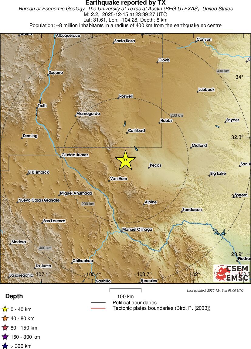 | 2.4 | 3.1 | 8417 | 00:20 | Link | Kleine beving - WESTERN TEXAS - Vandaag |