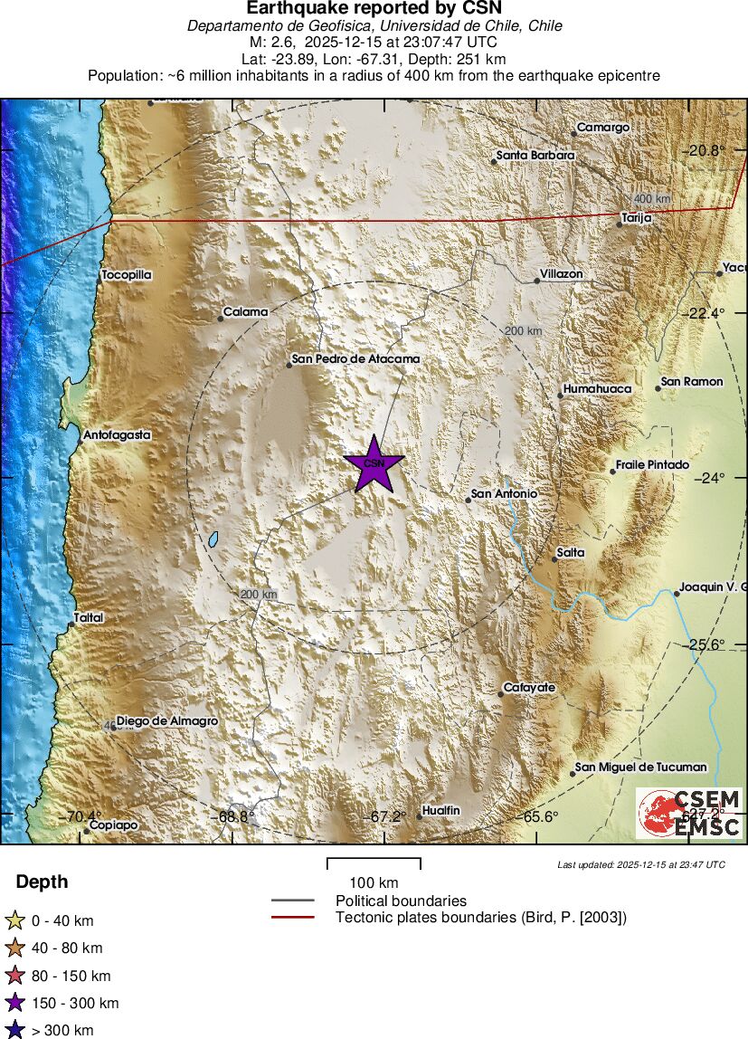 | 2.6 | 251.4 | 10874 | 00:07 | Link | Kleine beving - ANTOFAGASTA, CHILE - Vandaag |