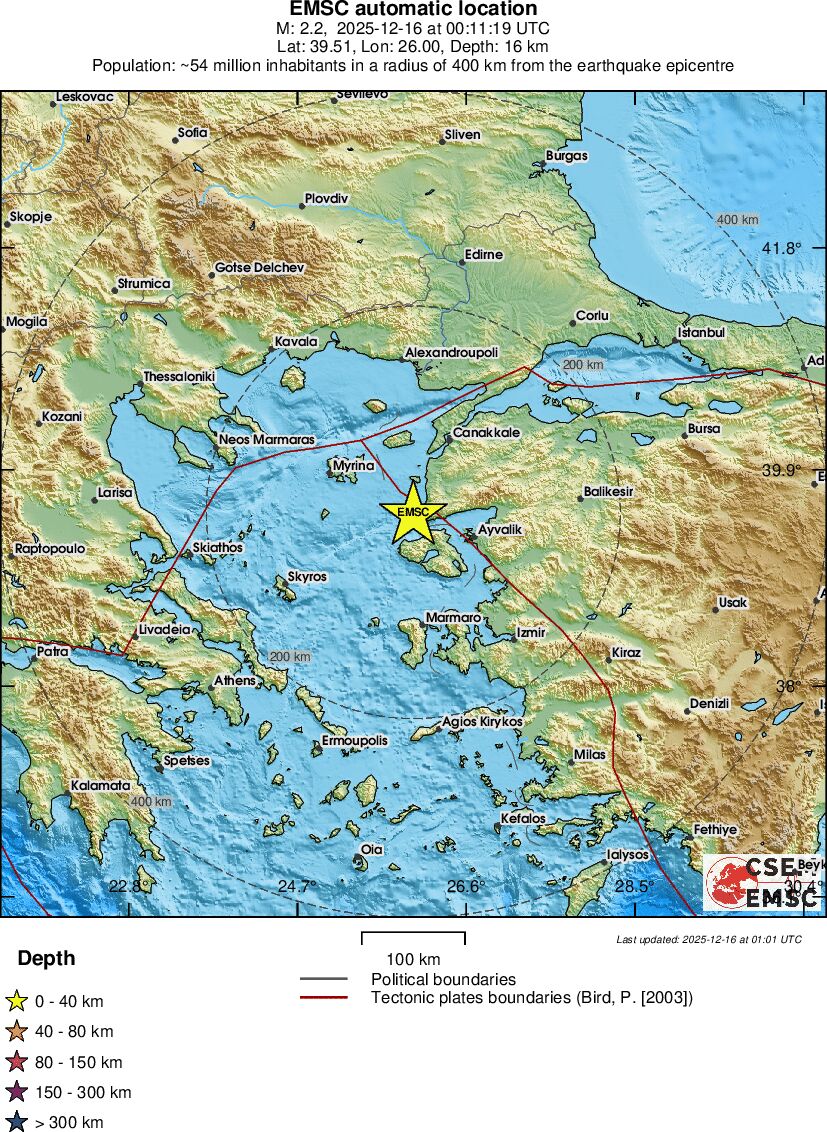 | 2.3 | 12.1 | 2106 | 01:11 | Link | Kleine beving - NEAR THE COAST OF WESTERN TURKEY - Vandaag |