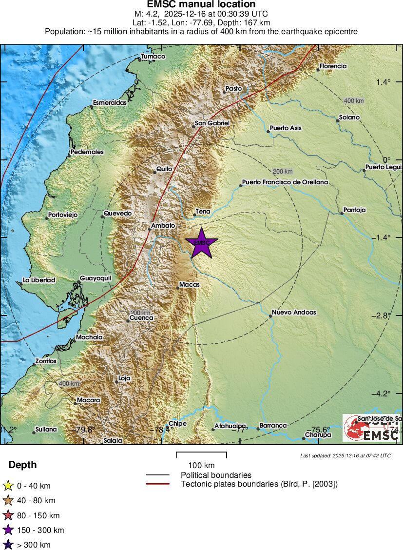 | 4.3 | 191 | 9613 | 01:30 | Link | Lichte beving - ECUADOR - Vandaag |